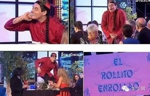 2014年初,西班牙电视五台的跨年晚会的一个小品节目以中餐馆为背景,一名穿唐装、梳大辫、带瓜皮帽的西班牙人扮演华人跑堂,极尽丑化华人之事,并并诬陷华人餐馆里都是猫肉和狗肉。西班牙五台激怒了无数华人,在外交部和当地华人社团的施压下,5台最终低头认错表示不会再犯。